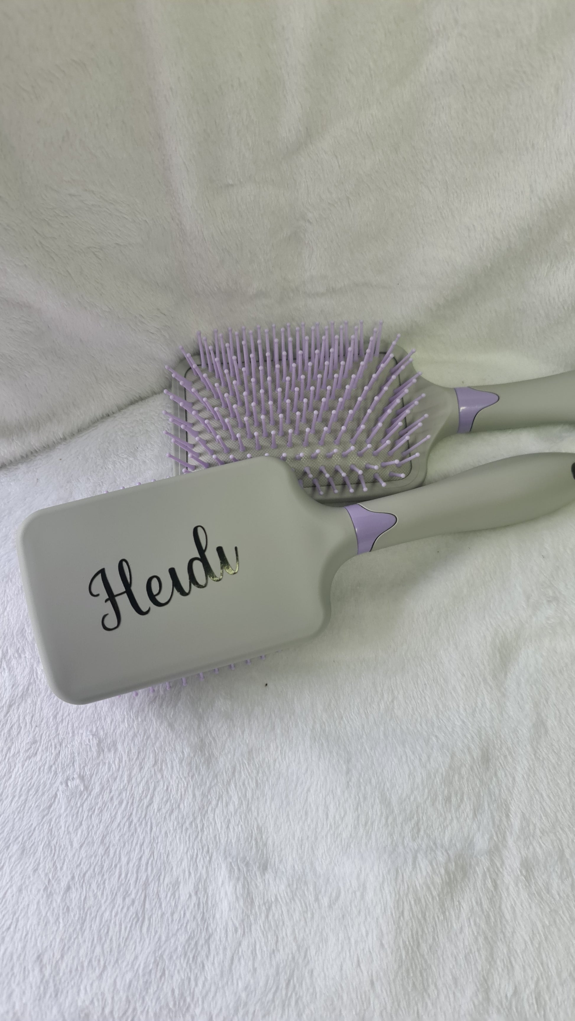 our personalised brushes are perfect gifts with their sleek grey and lilac coloured design, personalised with black permanent vinyl of your choosen name.